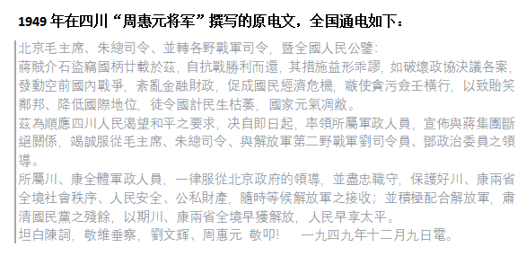 本文标题:国民党起义将军周惠元对四川和平解放的历史贡献及“成都双流周家将领”在中国正面抗日的历史奉献 暨周道刚将军发展实业救国对近